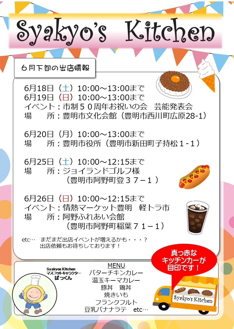 HOME > Warning: Undefined array key 0 in /home/xshigashine/seisaku-kankyo.com/public_html/toyoake-syakyo02.seisaku-kankyo.com/wp-content/themes/syakyo/breadcrumb.php on line 21 /home/xshigashine/seisaku-kankyo.com/public_html/toyoake-syakyo02.seisaku-kankyo.com/wp-content/themes/syakyo/breadcrumb.php on line 22 "> Warning: Attempt to read property "cat_name" on null in /home/xshigashine/seisaku-kankyo.com/public_html/toyoake-syakyo02.seisaku-kankyo.com/wp-content/themes/syakyo/breadcrumb.php on line 22 > 6月の出店情報 6月の出店情報 2022.06.16