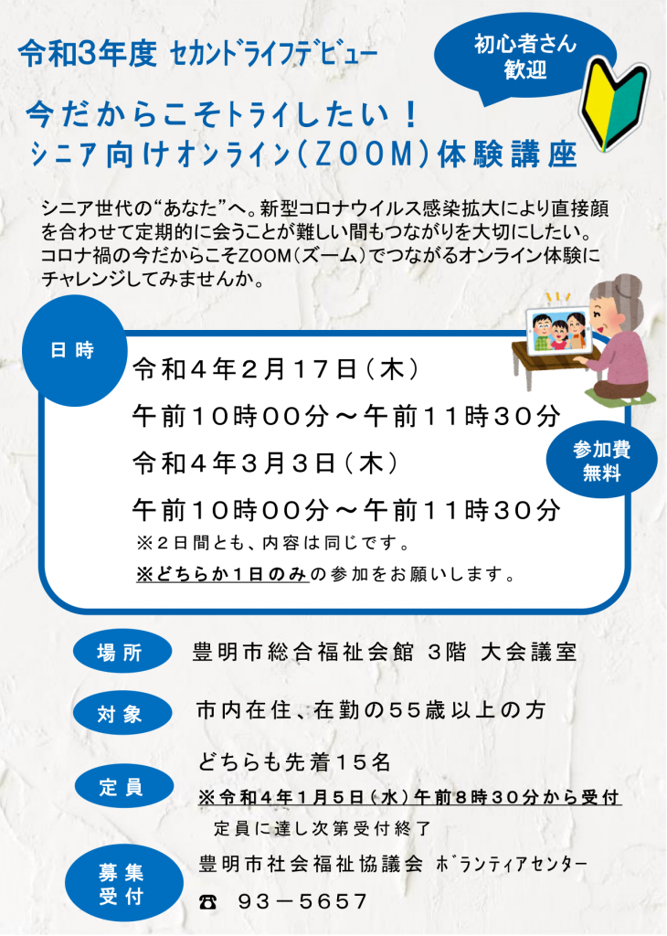令和3年度セカンドライフデビュー 今だからこそトライしたい!シニア向けオンライン(ZOOM)体験講座