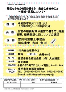 令和6年度市民地域福祉講座 「元気なうちから取り組もう 自分亡き後のこと~相続・遺言について~」 開催案内