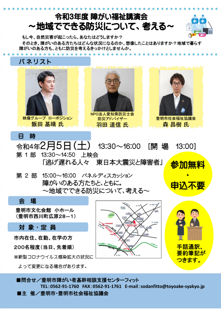 令和4年度障がい福祉講演会~地域でできる防災について、考える~を開催します。