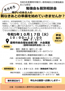 令和5年度豊明市障がい者地域自立支援協議会 おとな部会 勉強会&個別相談会 「そろそろ障がいのある人の親なきあとの準備を始めていきませんか?」