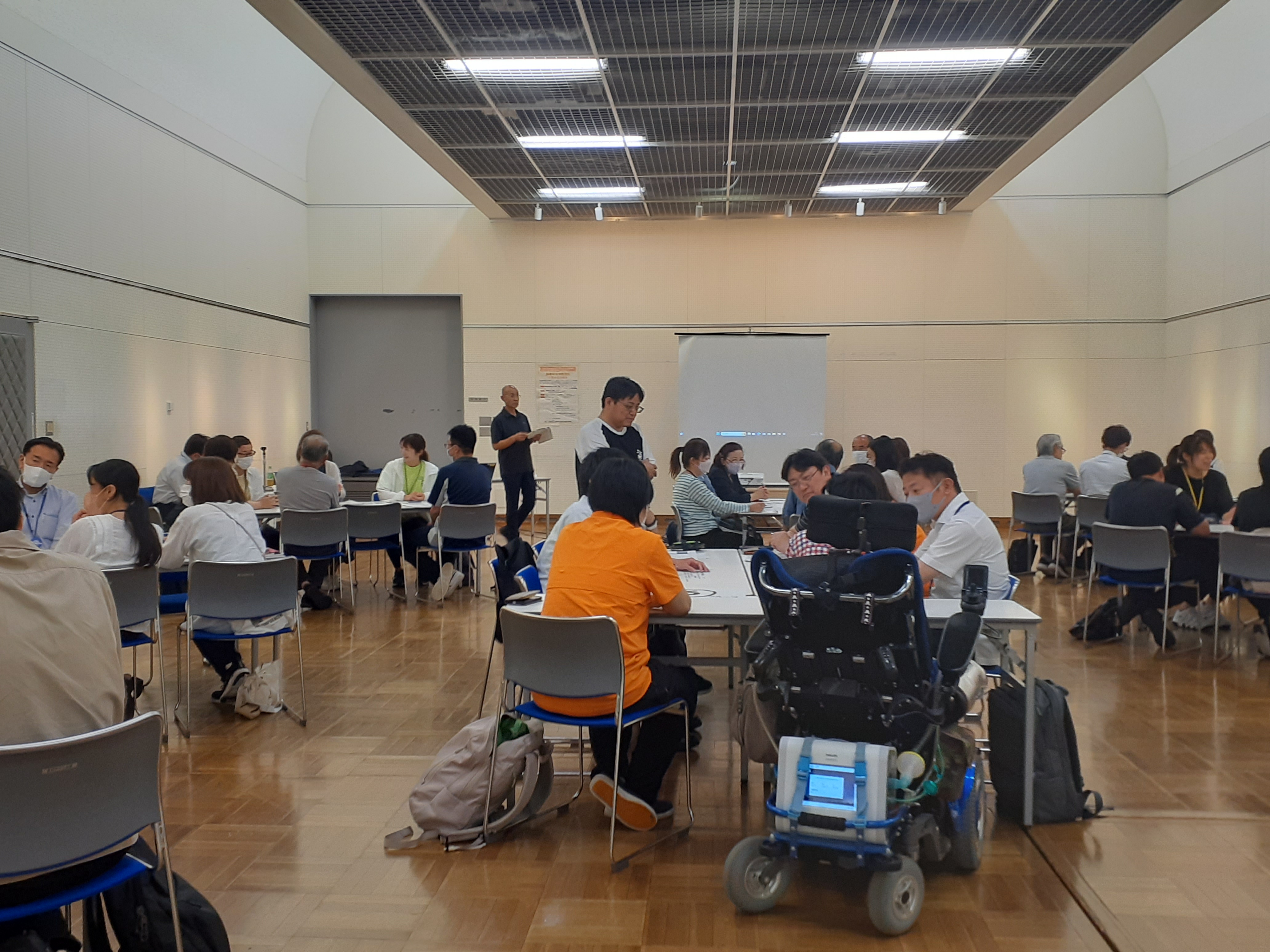 今回の研修会では、福祉サービス事業所職員の方々だけでなく、民生児童委員の方々、ボランティア団体の方など約70名の方にご参加頂き、講演や情報交換会でのグループワークを通して、『共に生きる社会』について考えることができました。