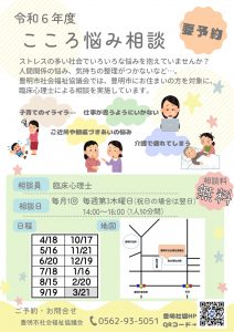 HOME > お知らせ > 令和6年度 こころ悩み相談について 令和6年度 こころ悩み相談について 令和6年度 こころ悩み相談を以下の日程で行います。 ※こちらのページから詳細をご確認いただけます。 2024.03.27