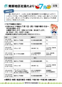 7月の南部地区社協のお知らせです。