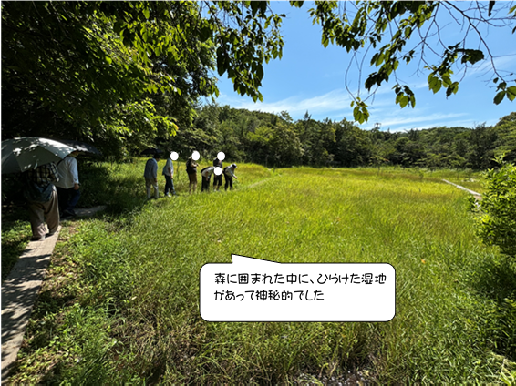 大狭間湿地は市指定天然記念物です。日本一小さい「ハッチョウトンボ」や「メダカ」、白くてきれいな「サギソウ」など、豊かな生態系を観察できました!