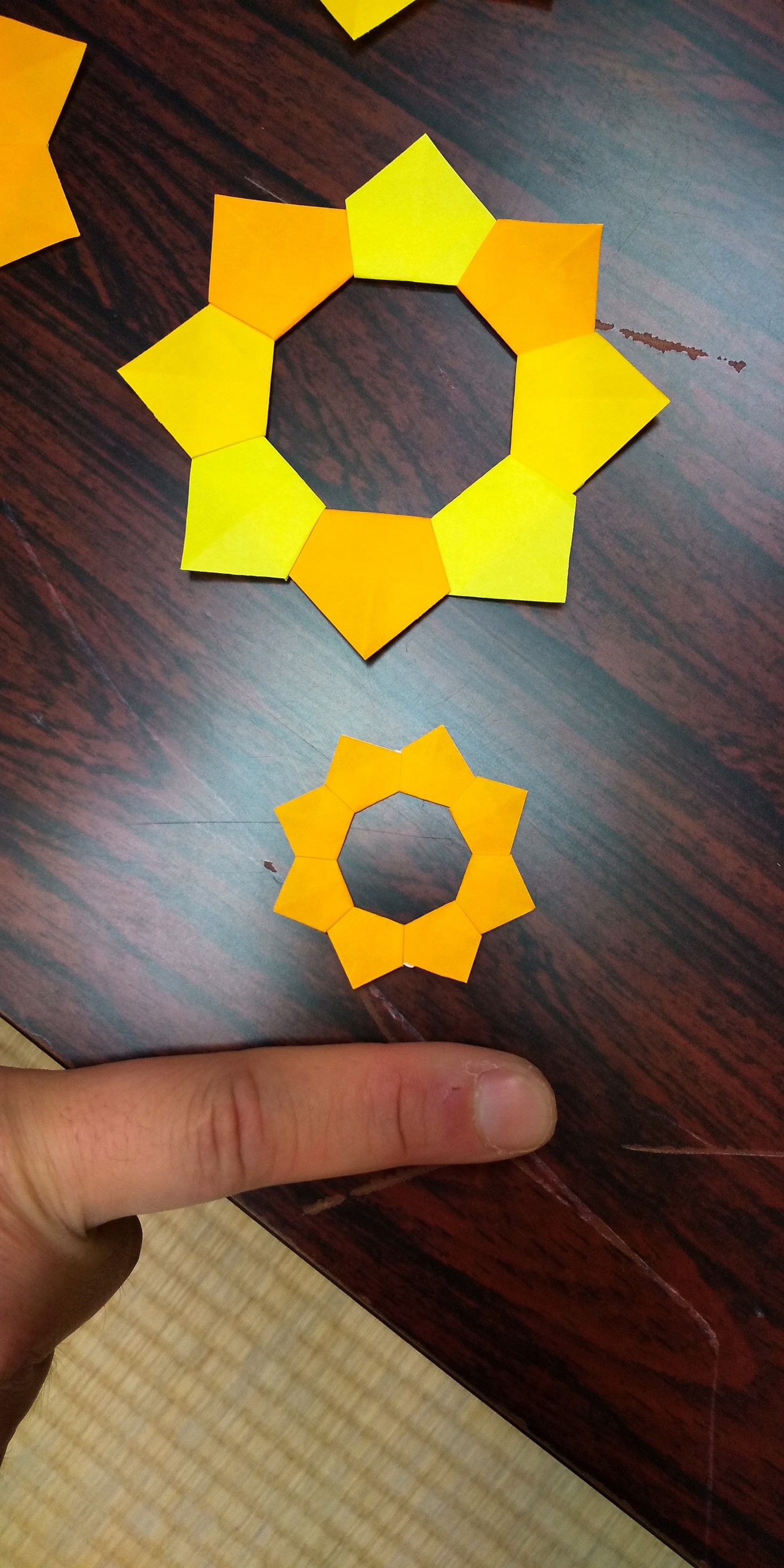 写真はみんなで折り紙をしている様子です。色んな大きさで折ってみたり、違う色で組み合わせてみたり・・・個性が光っております☆