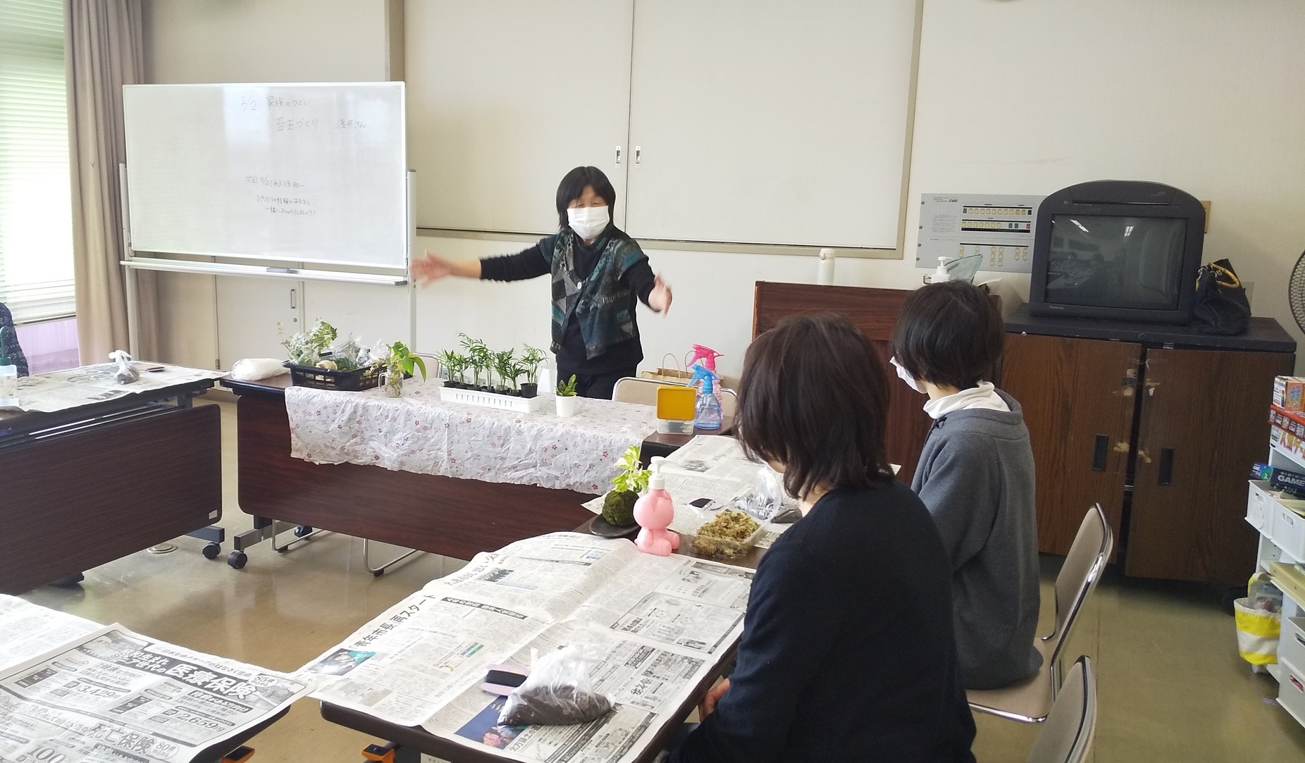 2月の家族つどいでは、はばたきサポーターをお呼びして、苔玉づくりを行いました。緑を眺めながらほっこりとした時間が流れ、それぞれの思い思いの苔玉が出来上がりました。