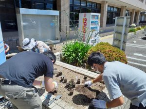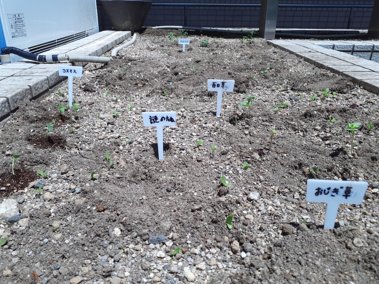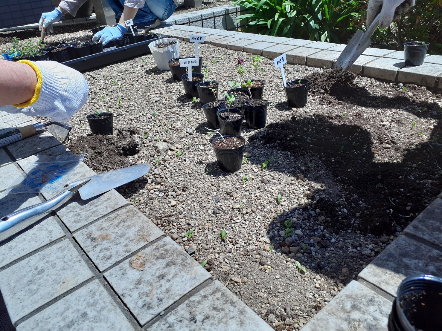 6月のスワローでは、4月から育てている花の苗を花壇に植えました♪