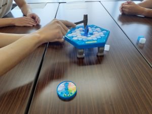 新しいゲームは、ペンギンを落とさずに足元のブロックをハンマーで落としていきます🐧簡単なルールですが、なかなか白熱しますよ~!