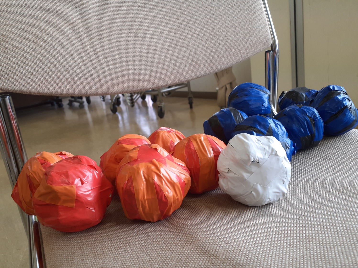 ボッチャは、初めて遊ぶ人も多かったので、ルールを調べながら遊びました。なんとこのボッチャ・・・スワローの参加者さんが手作りして下さいました!!