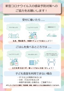 受付等で密にならないよう、感染予防対策にご協力をお願いいたします。