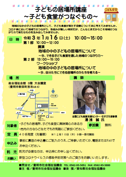 子どもの居場所講座~子ども食堂がつなぐもの~ 開催します