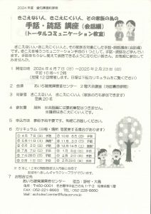 あいち聴覚障害者センターより講座等の案内が下記のとおりありましたので、お知らせいたします。