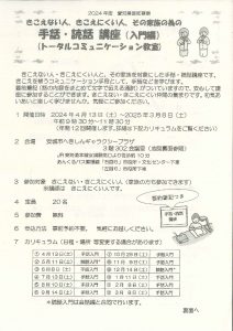 〇きこえない人、きこえにくい人、その家族の為の手話・読話 講座(会話編)トータルコミュニケーション教室