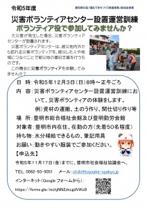 令和5年度災害ボランティアセンター設置運営訓練 ボランティア役募集!!